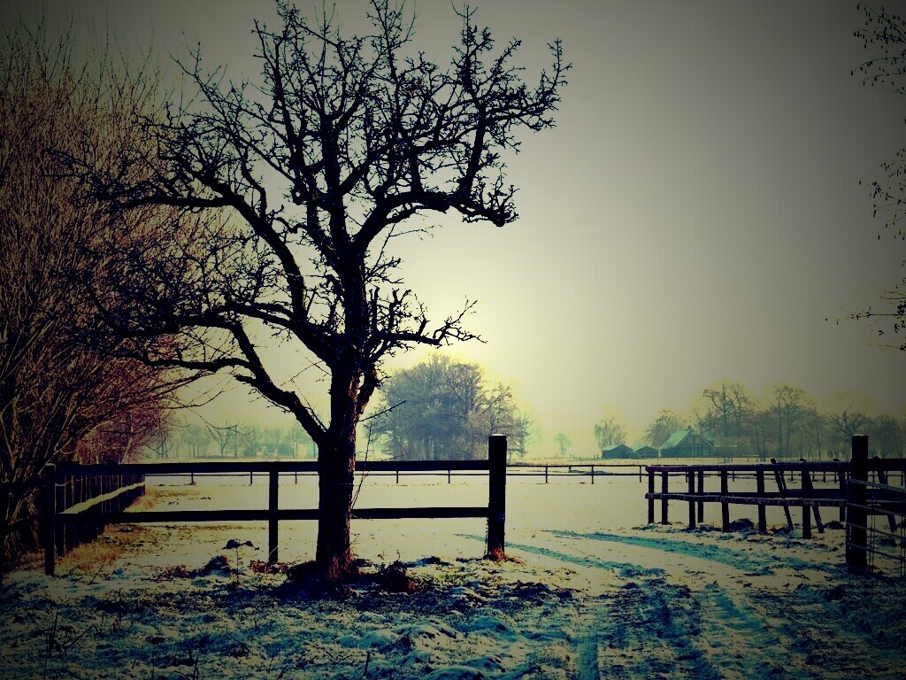 Обои для рабочего стола «Зимний пейзаж» 1024х768 с фильтром lomo (оригинал 1920х1080)