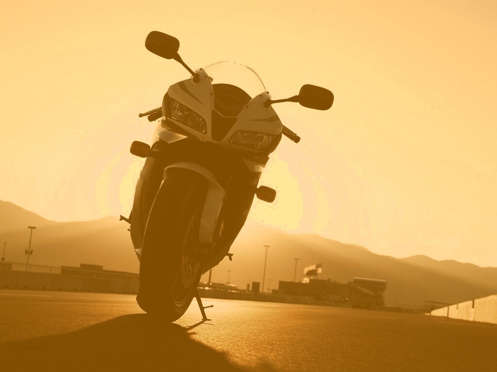 «Мотоцикл на фоне заходящего солнца»