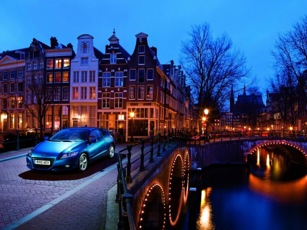 «Автомобиль на мосту в свете фонаря»