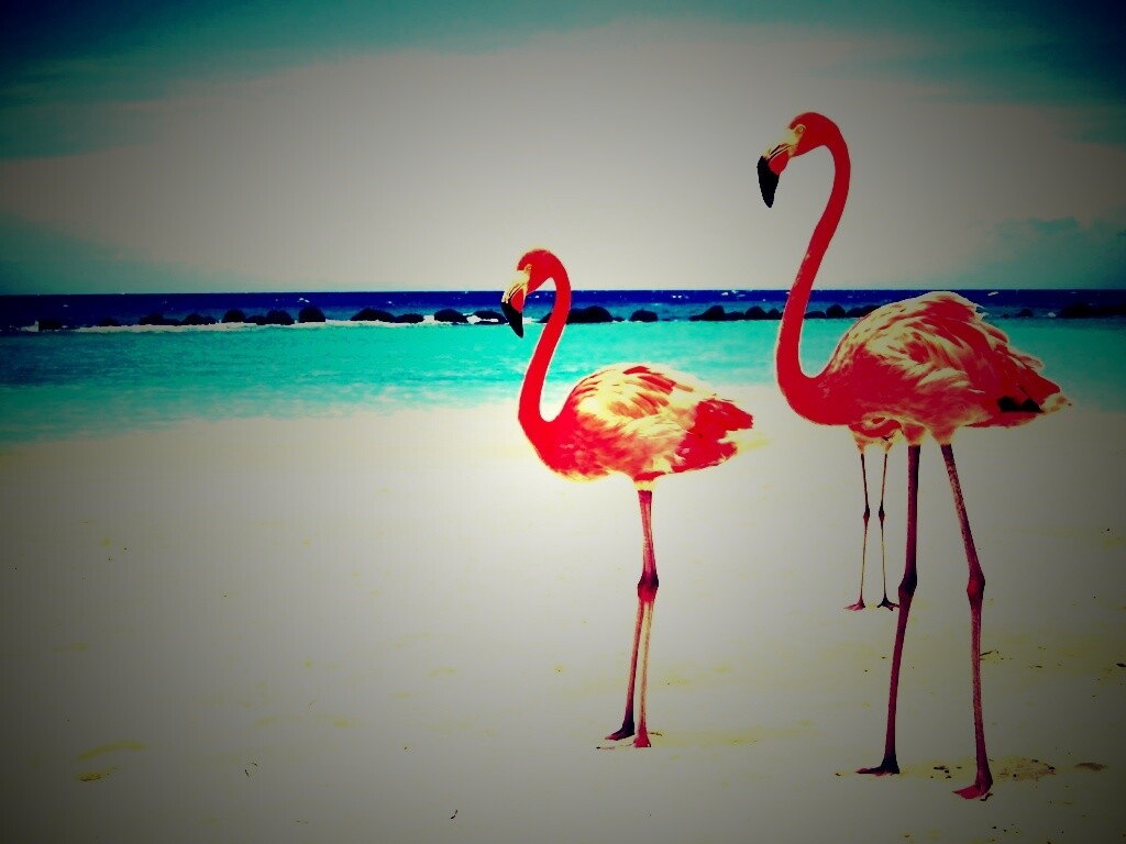 «Розовые фламинго на пляже»