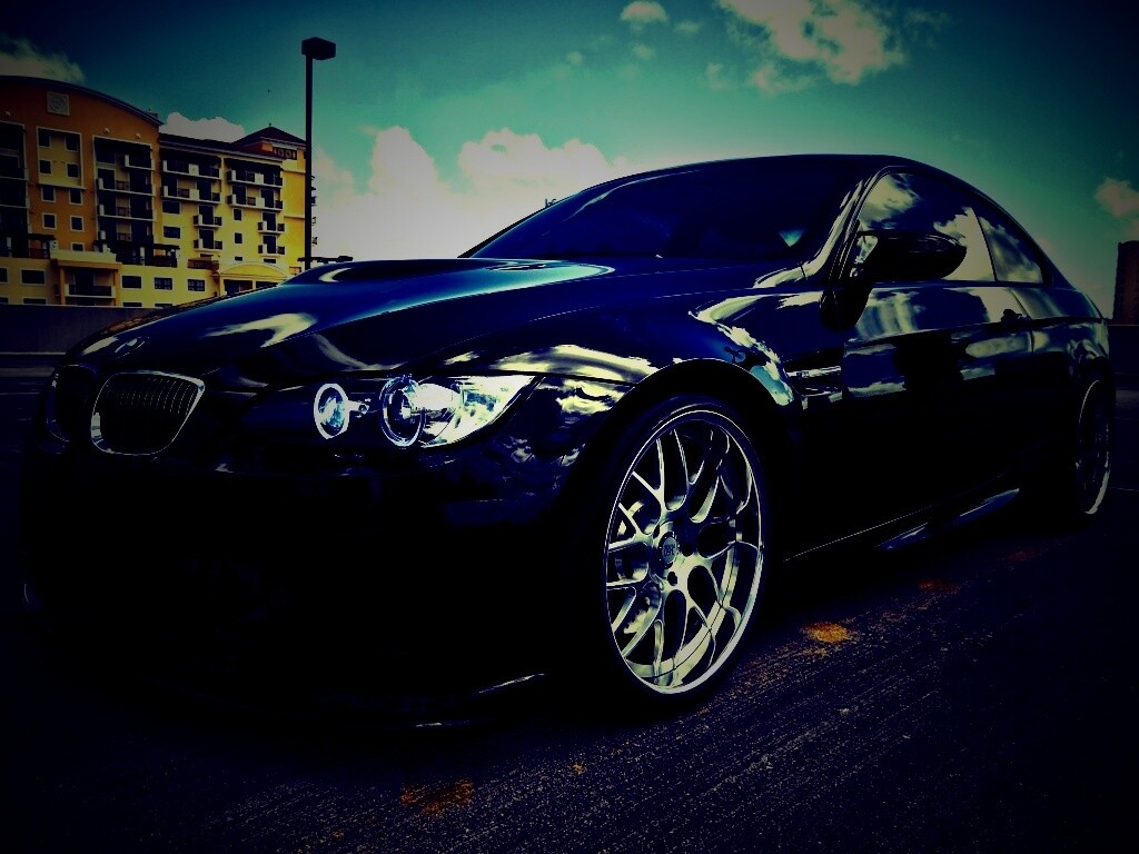 «Красивый черный BMW на парковке»