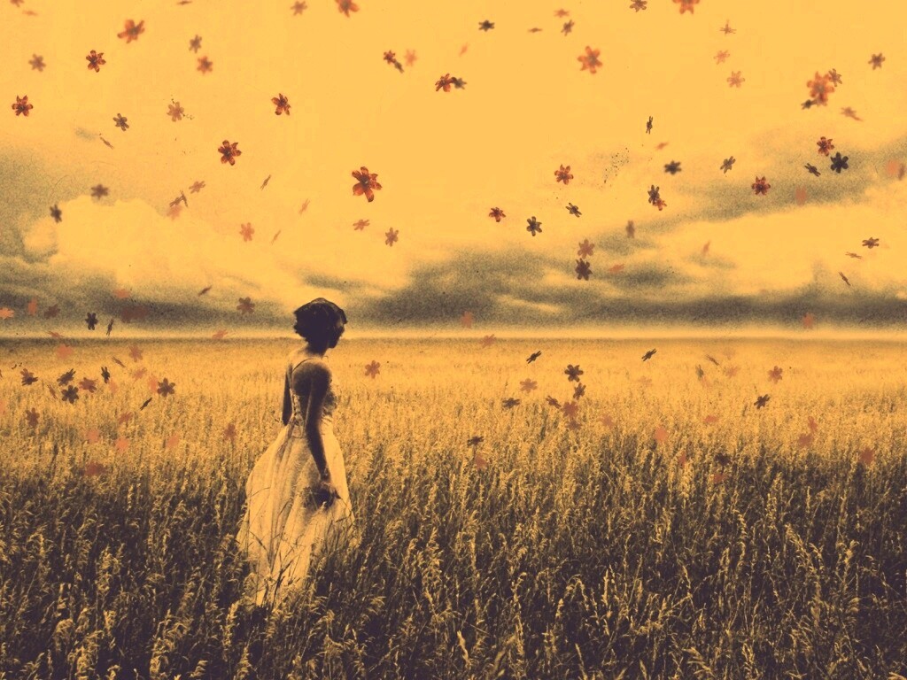 «Грустная девушка в поле травы»