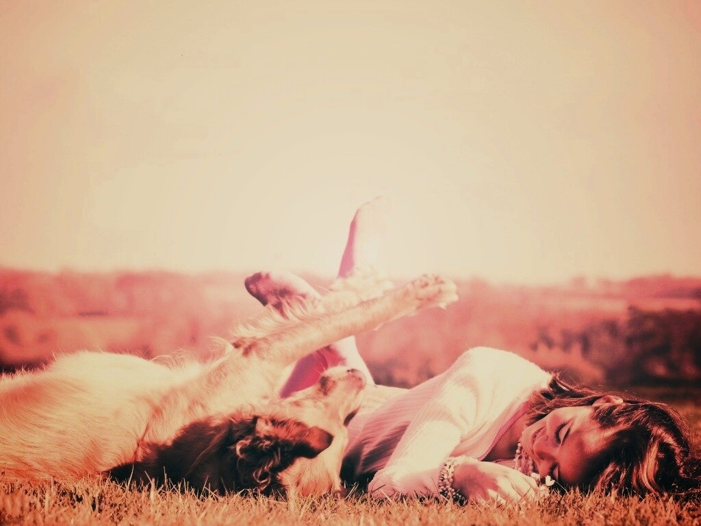 «Девушка и собака валяются на траве»