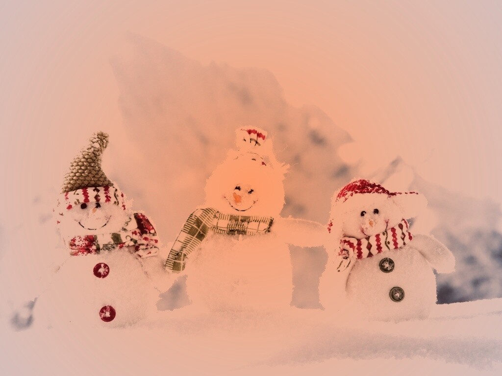 Обои для рабочего стола «Три снеговика» 1024х768 с фильтром toaster (оригинал 4288х2848)