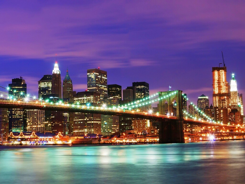 «Бруклинский мост на фоне ночного Нью-Йорка»