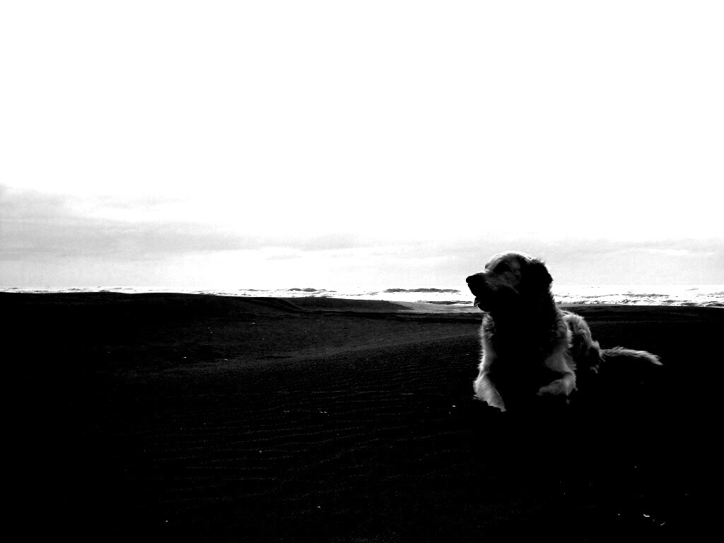 «Красивая собака на оранжевом песке»