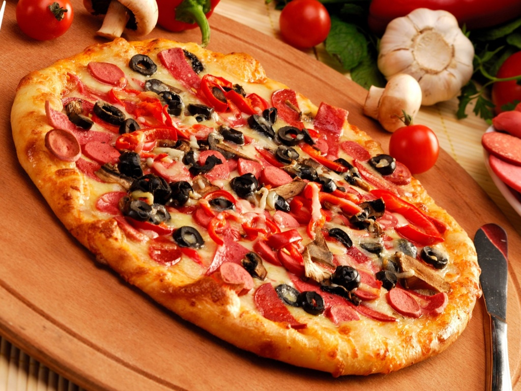Обои для рабочего стола «Сочная пицца» 1024х768 (оригинал 1920х1200)