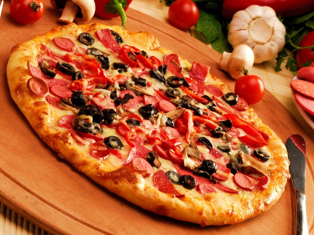 Обои для рабочего стола «Сочная пицца» 1024х768 с фильтром vibrance (оригинал 1920х1200)