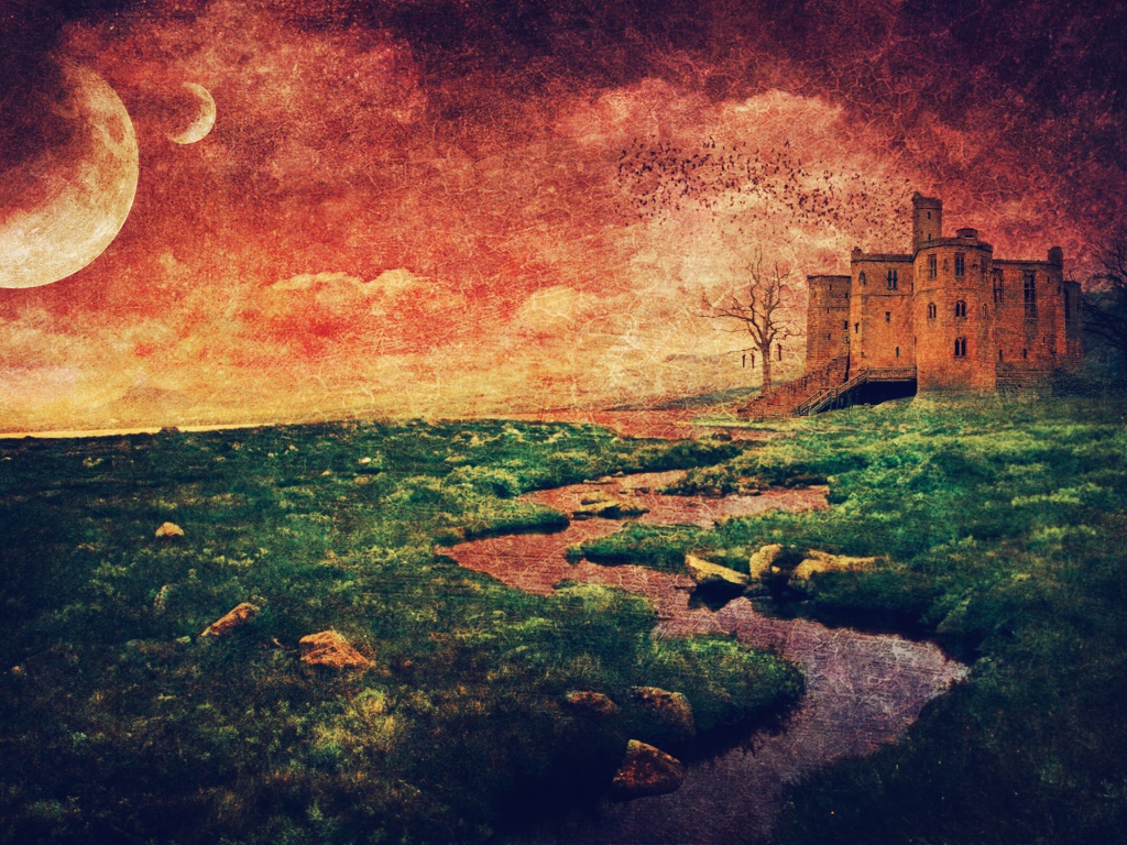 Обои для рабочего стола «Старинный пейзаж с замком» 1024х768 (оригинал 2560х1440)