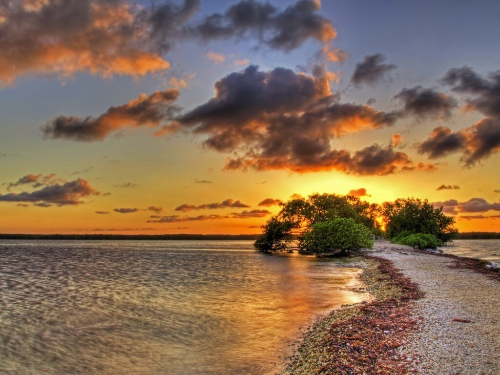 Обои для рабочего стола «Побережье на закате» 1024х768 с фильтром vibrance (оригинал 3200х2000)