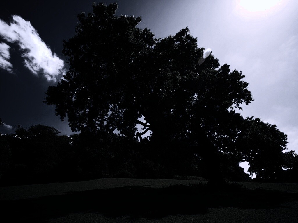 «Большое зеленое дерево на лужайке»