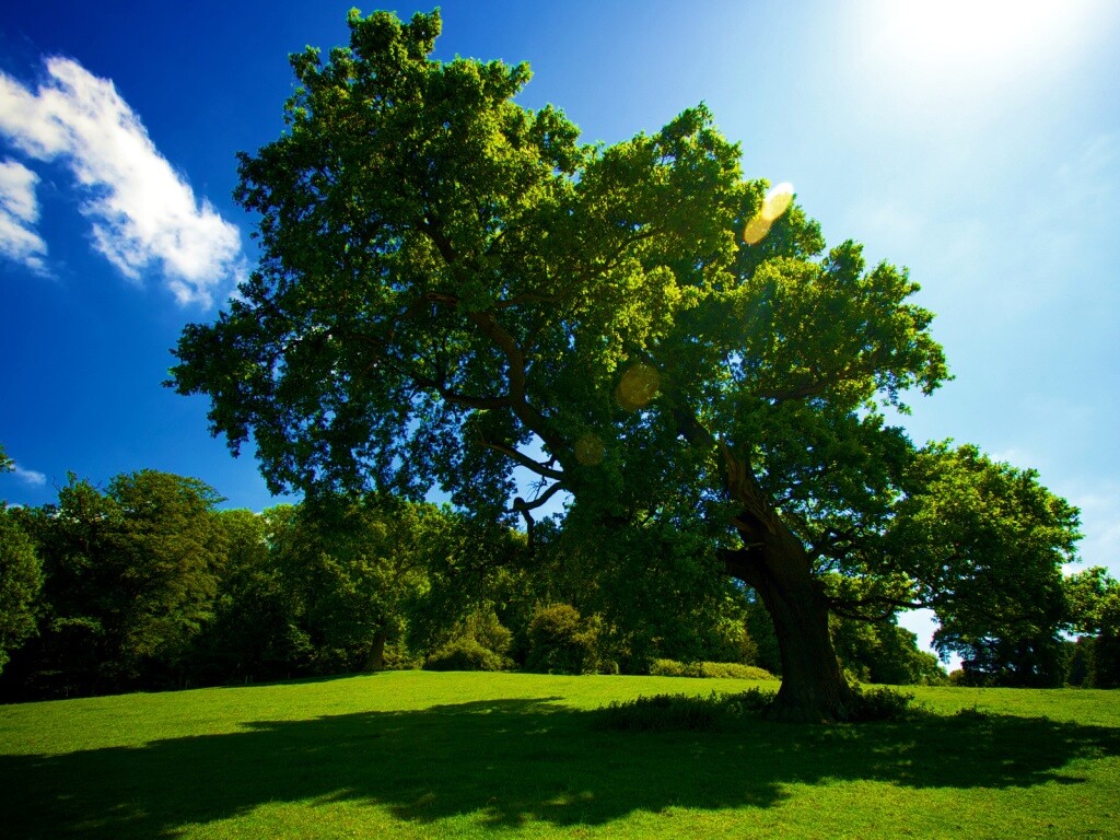 «Большое зеленое дерево на лужайке»