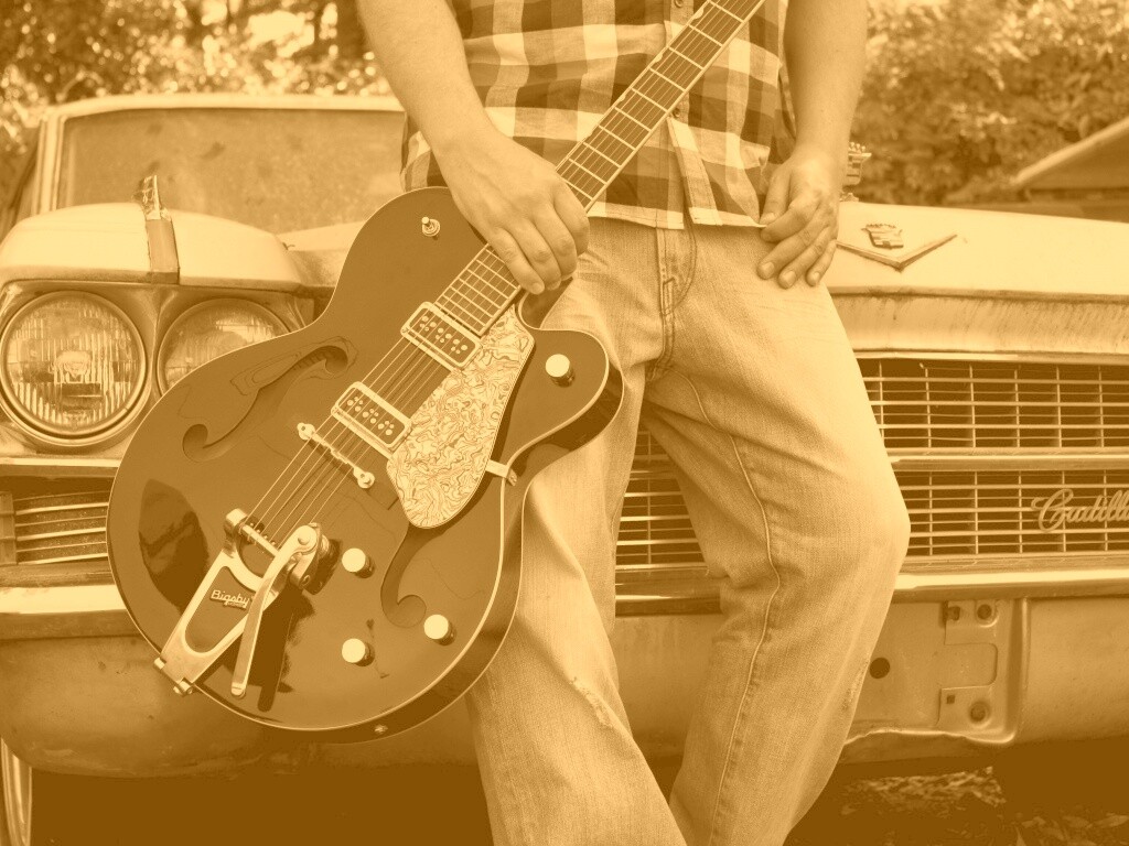 Обои для рабочего стола «Gretsch и Cadillac» 1024х768 с фильтром kelvin (оригинал 3888х2592)
