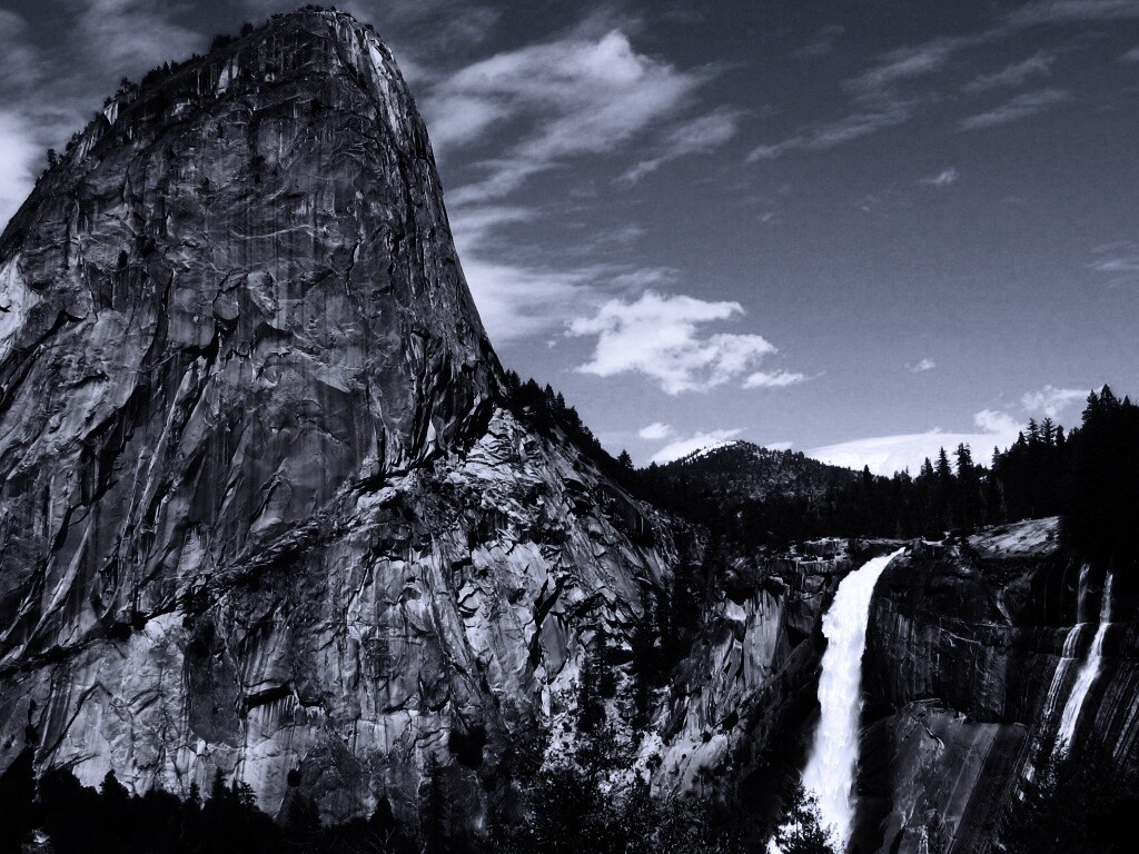 Обои для рабочего стола «Скалы и водопад» 1024х768 с фильтром gotham (оригинал 2560х1600)