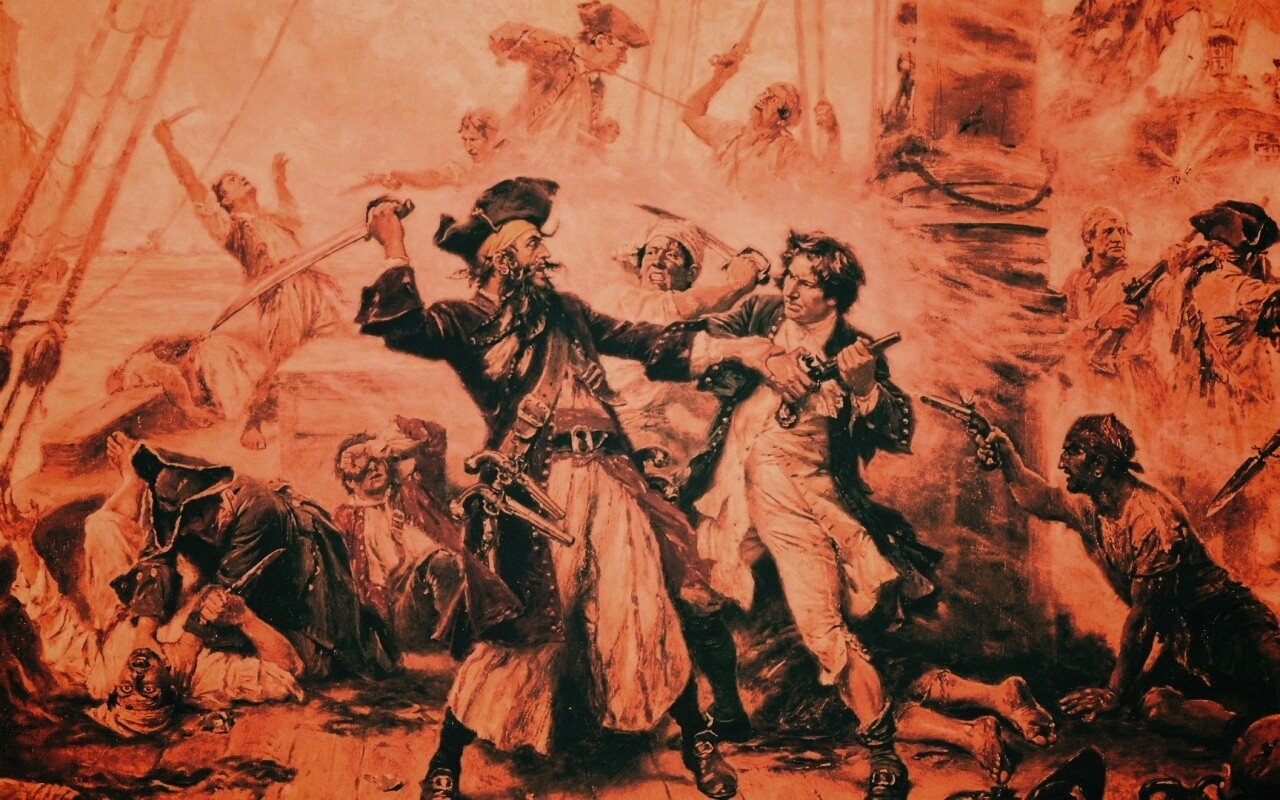 Обои для рабочего стола «Бой с пиратами» 1280х800 с фильтром earlybird (оригинал 1920х1080)