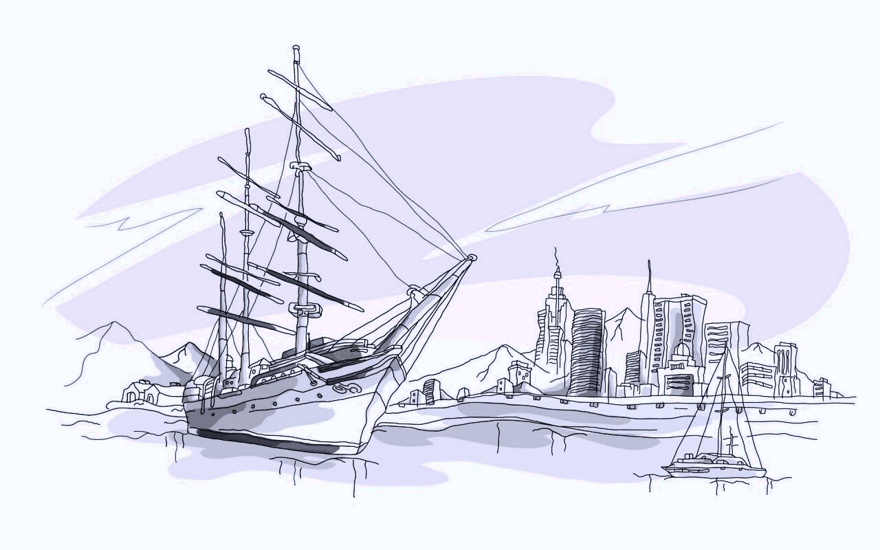 «Парусник у города»