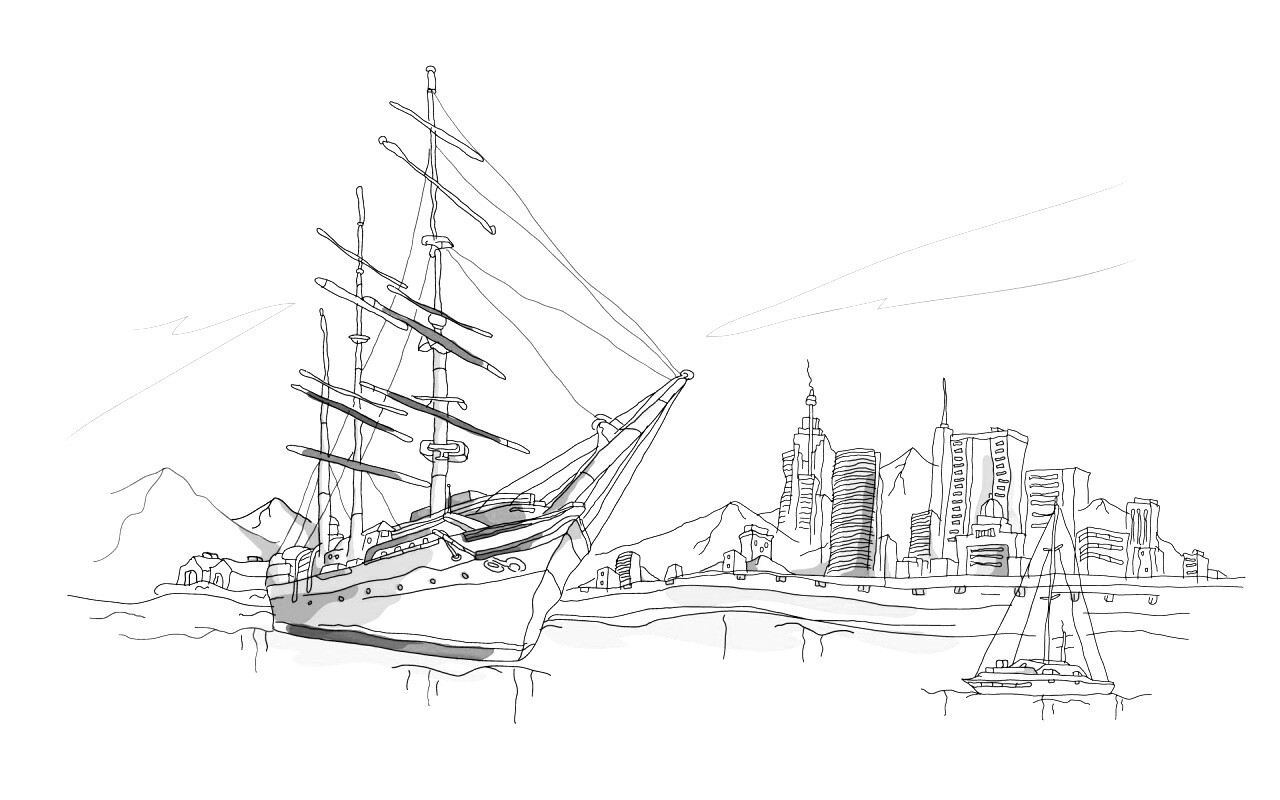 «Парусник у города»