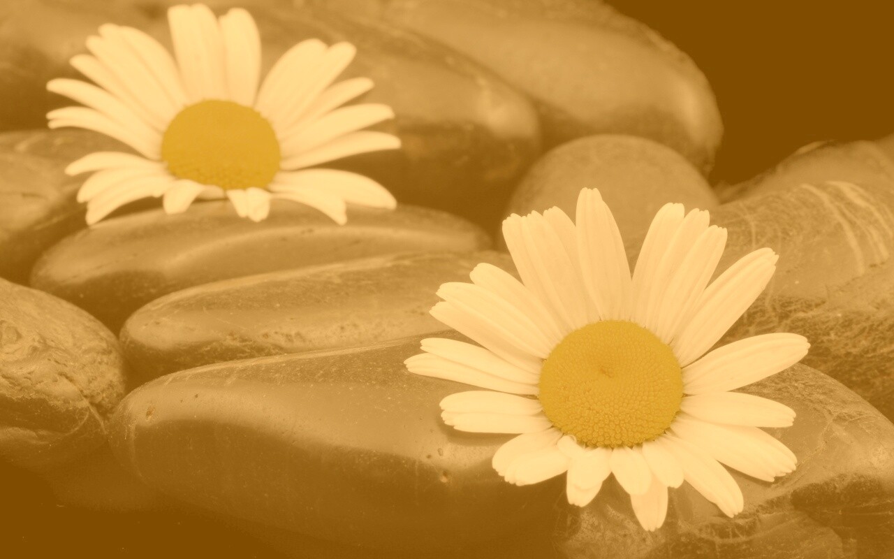Обои для рабочего стола «Ромашка среди гальки» 1280х800 с фильтром kelvin (оригинал 3872х2592)