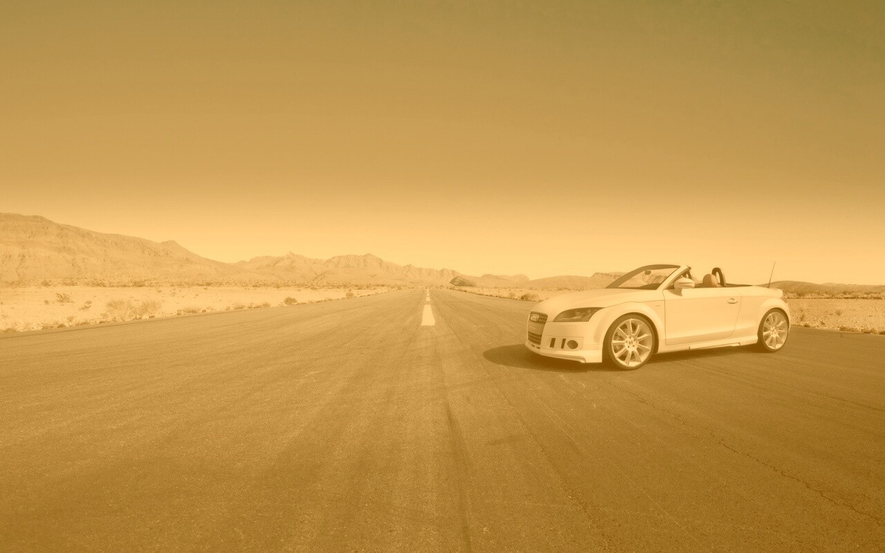«Кабриолет Ауди на пустынной дорге»