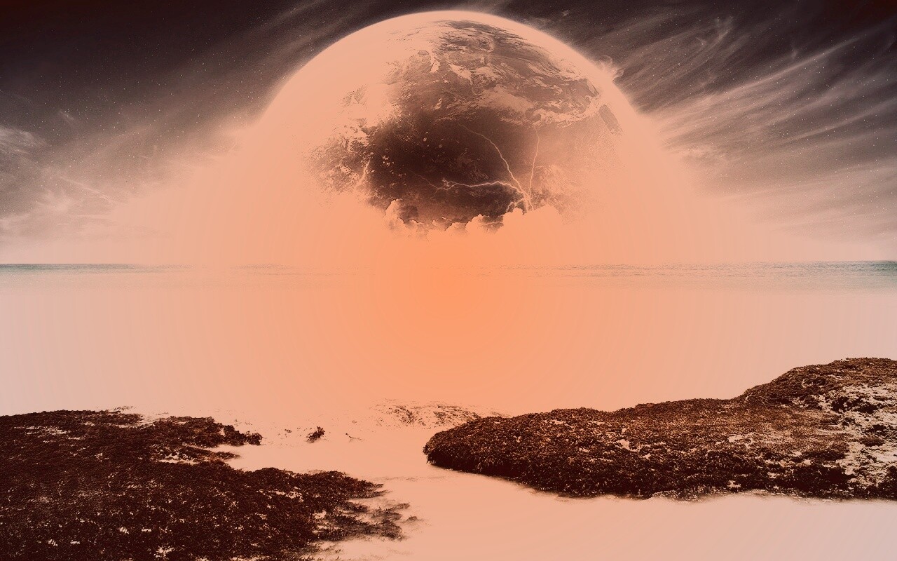 «Огромная луна над океаном»