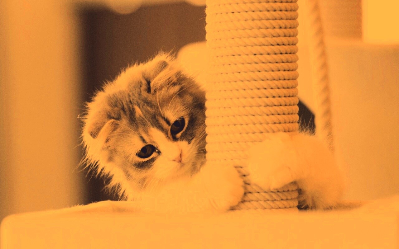 «Пушистая кошка с когтеточкой»