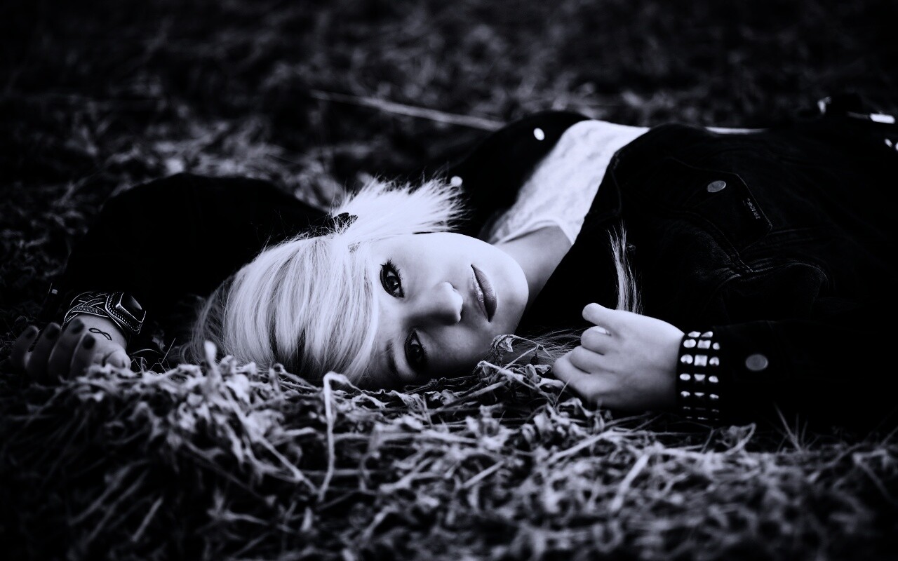 «Блондинка лежащая на траве»