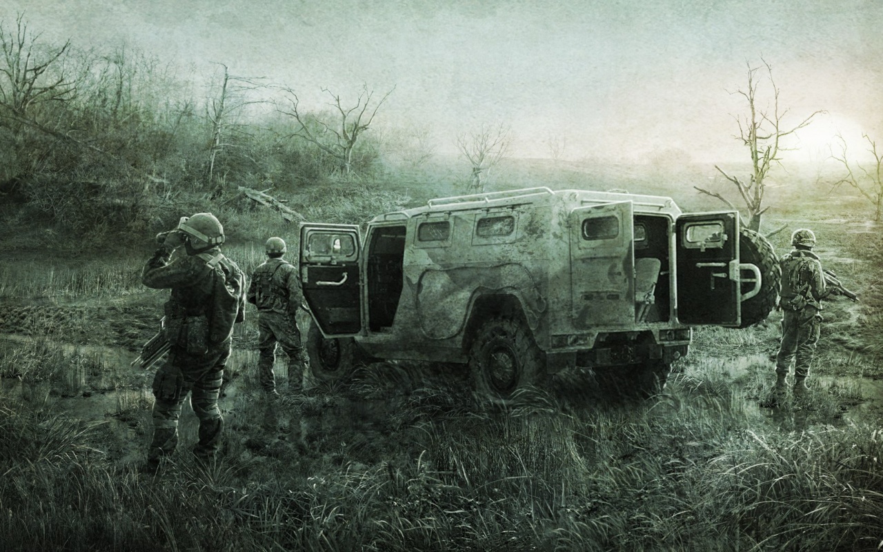 «Солдаты из сталкера на болоте»