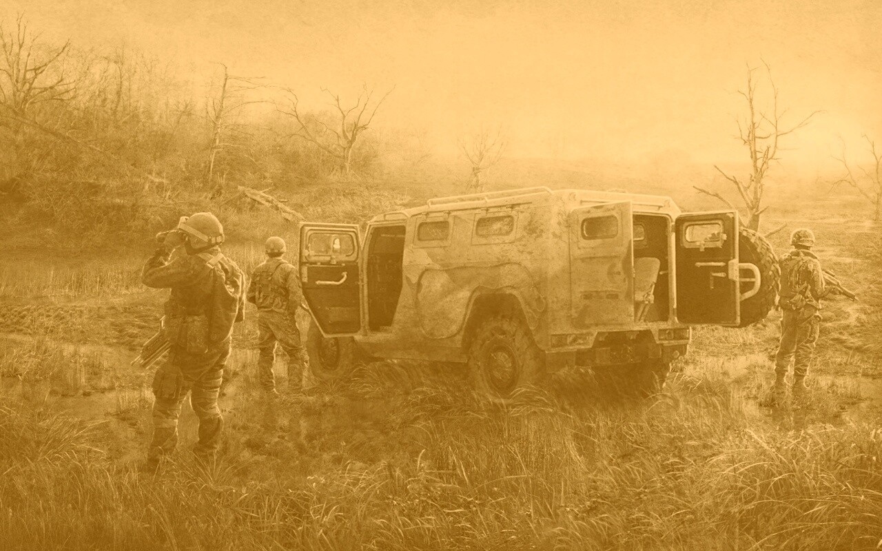 «Солдаты из сталкера на болоте»