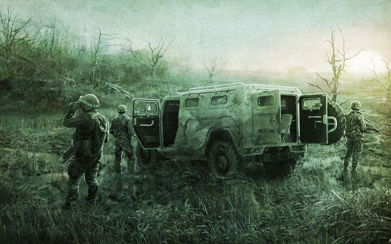 «Солдаты из сталкера на болоте»