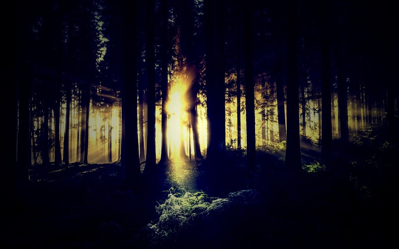«Свет пробивается сквозь стволы деревьев»