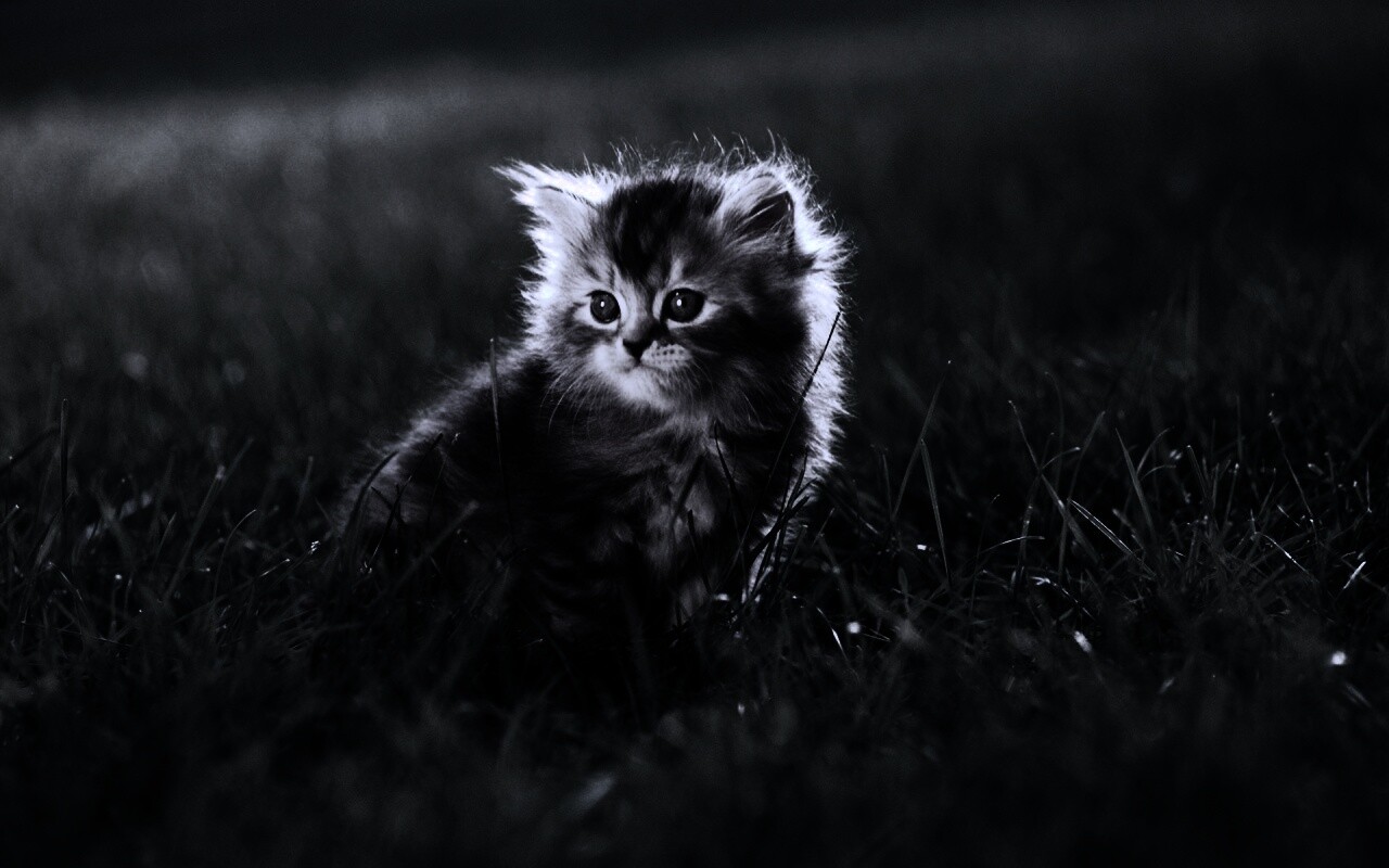 «Пушистый котенок в траве»