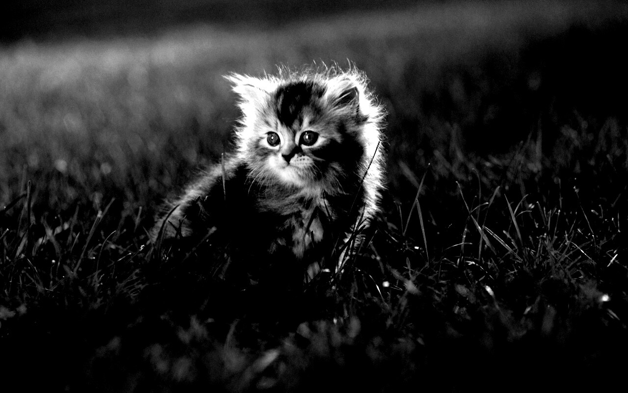 «Пушистый котенок в траве»