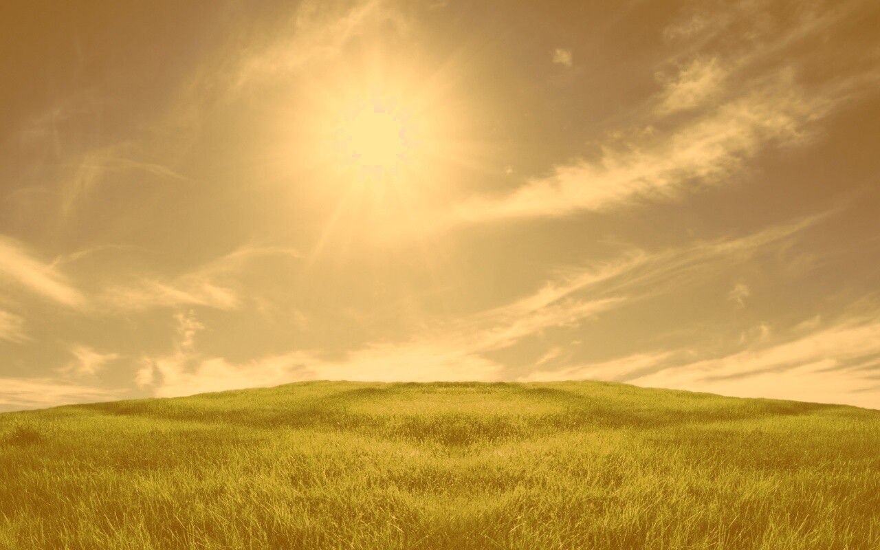 Обои для рабочего стола «Солнце над холмом» 1280х800 с фильтром kelvin (оригинал 2560х1600)