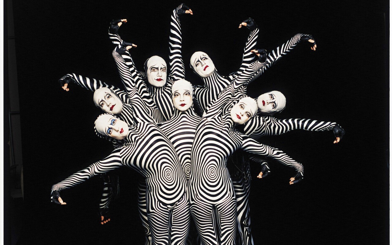 Обои для рабочего стола «Зеброиды (актеры цирка дю солей)» 1280х800 с фильтром vibrance (оригинал 3064х3122)