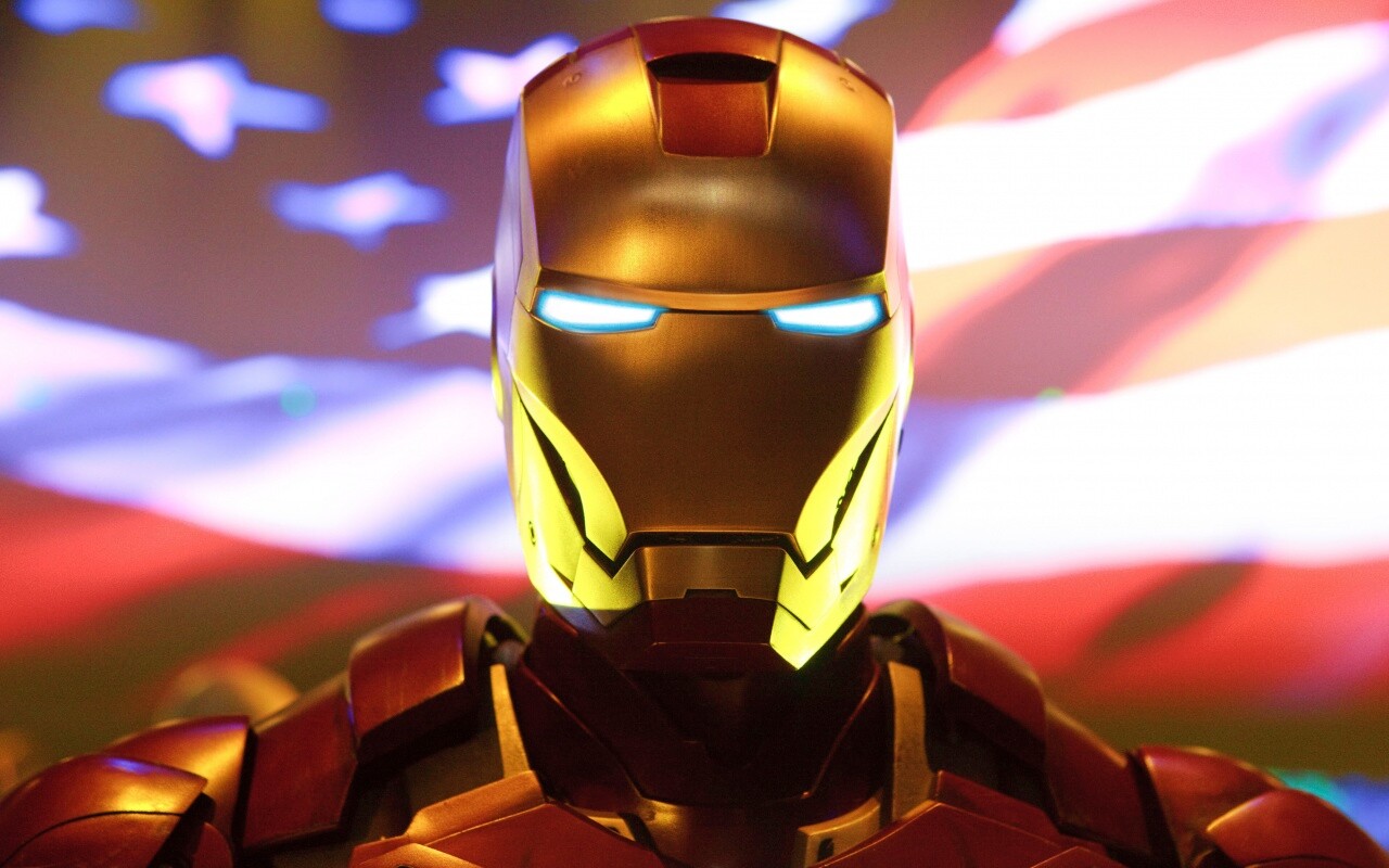 «Железный человек на фоне американского флага»