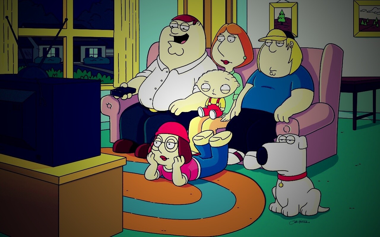 «Гриффины всей семьей перед телевизором»