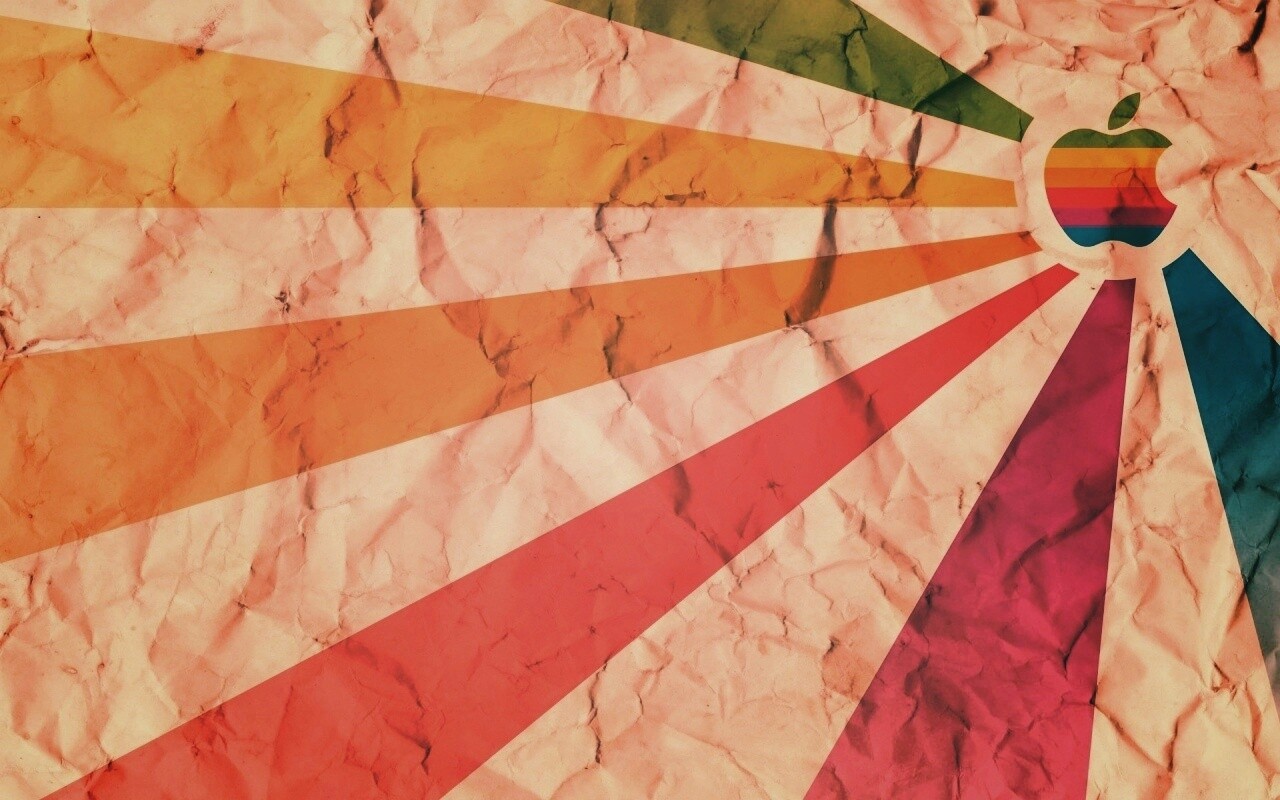 «Радужный логотип Apple на мятой бумаге»