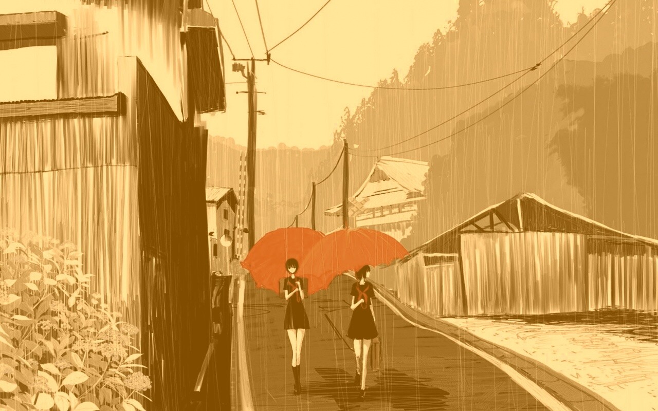 «Девушки с красными зонтами»
