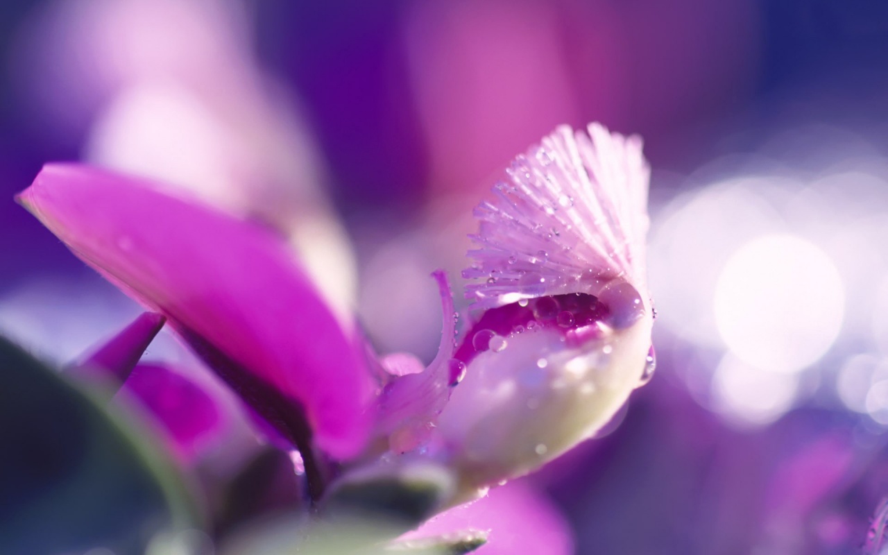Обои для рабочего стола «Капли на лиловом цветке» 1280х800 (оригинал 1920х1200)