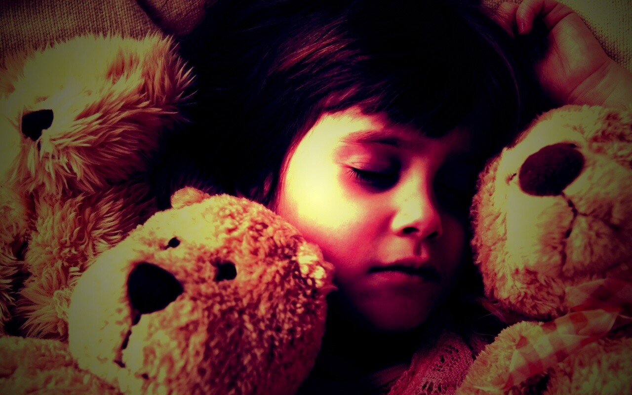«Девочка спит с мишками в обнимку»