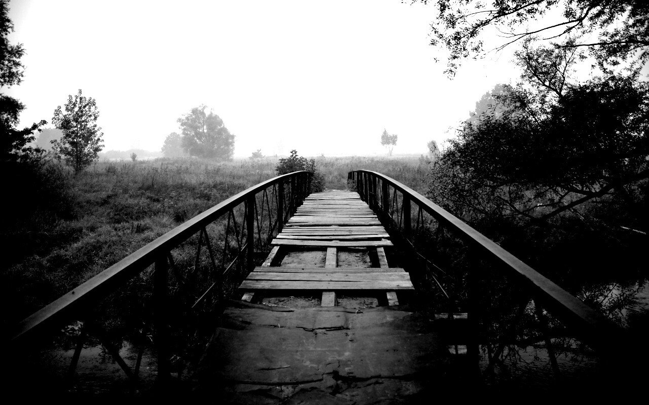 «Старый мост на черно-белом фото»