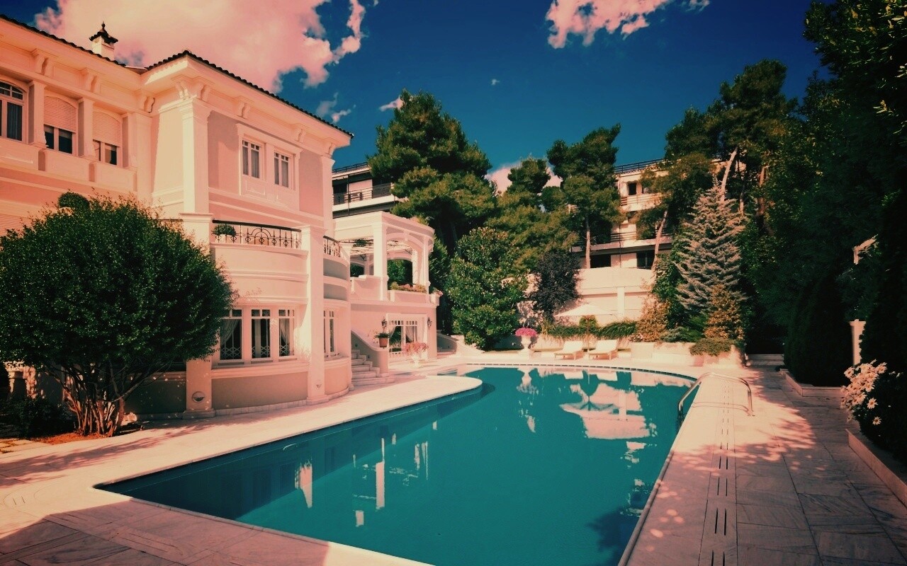 Обои для рабочего стола «Особняк с бассейном» 1280х800 с фильтром earlybird (оригинал 2560х1600)