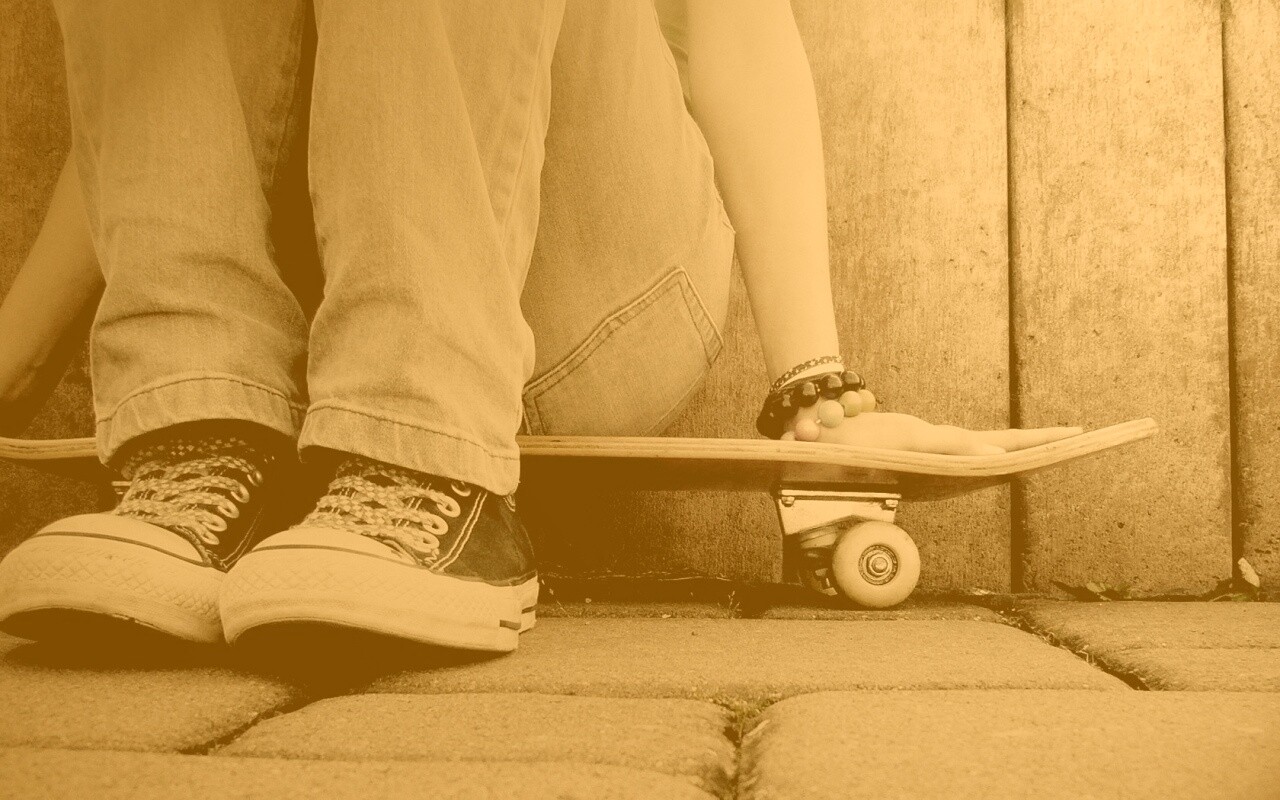 «Девушка сидящая на скейте»