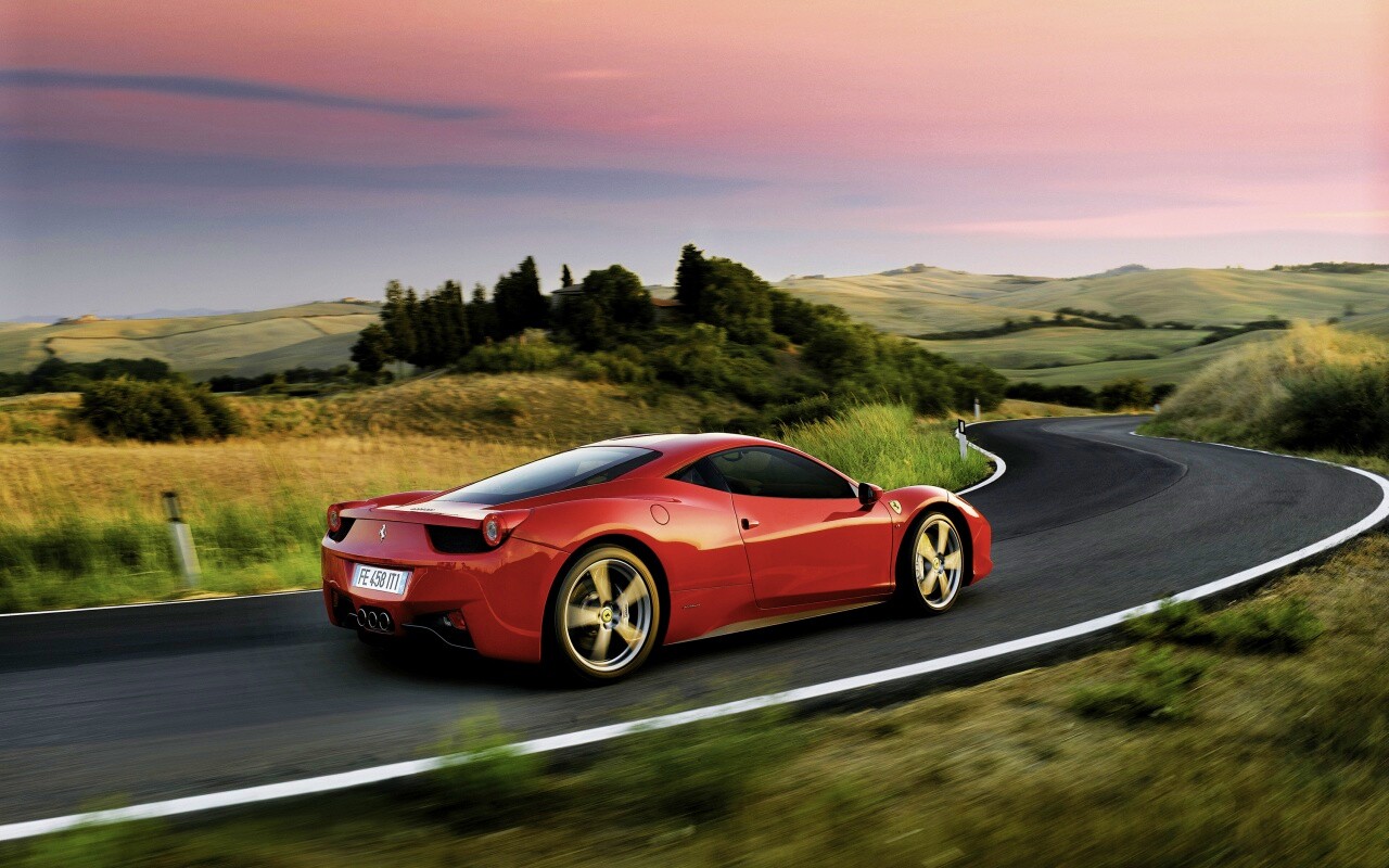 «Красная феррари на извилистой дороге»