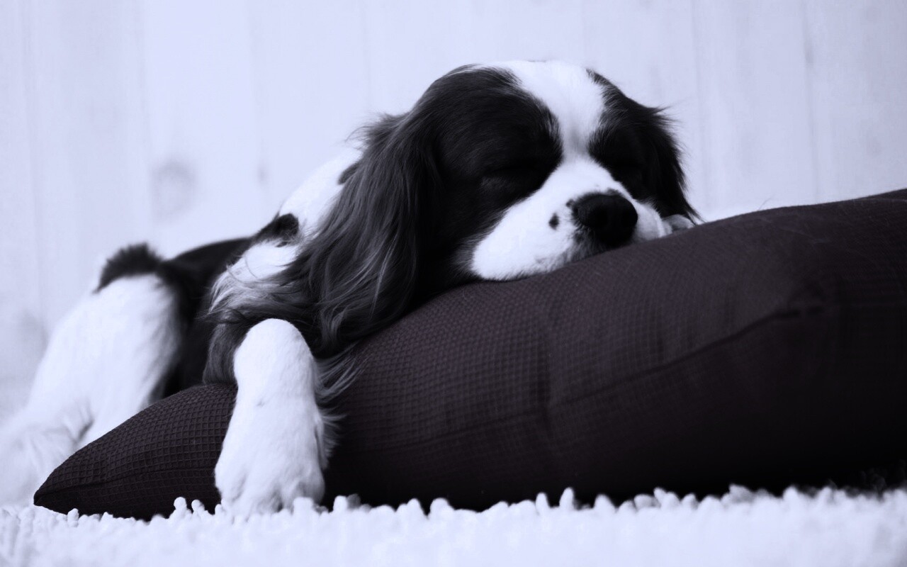 «Спящий щенок на красной подушке»