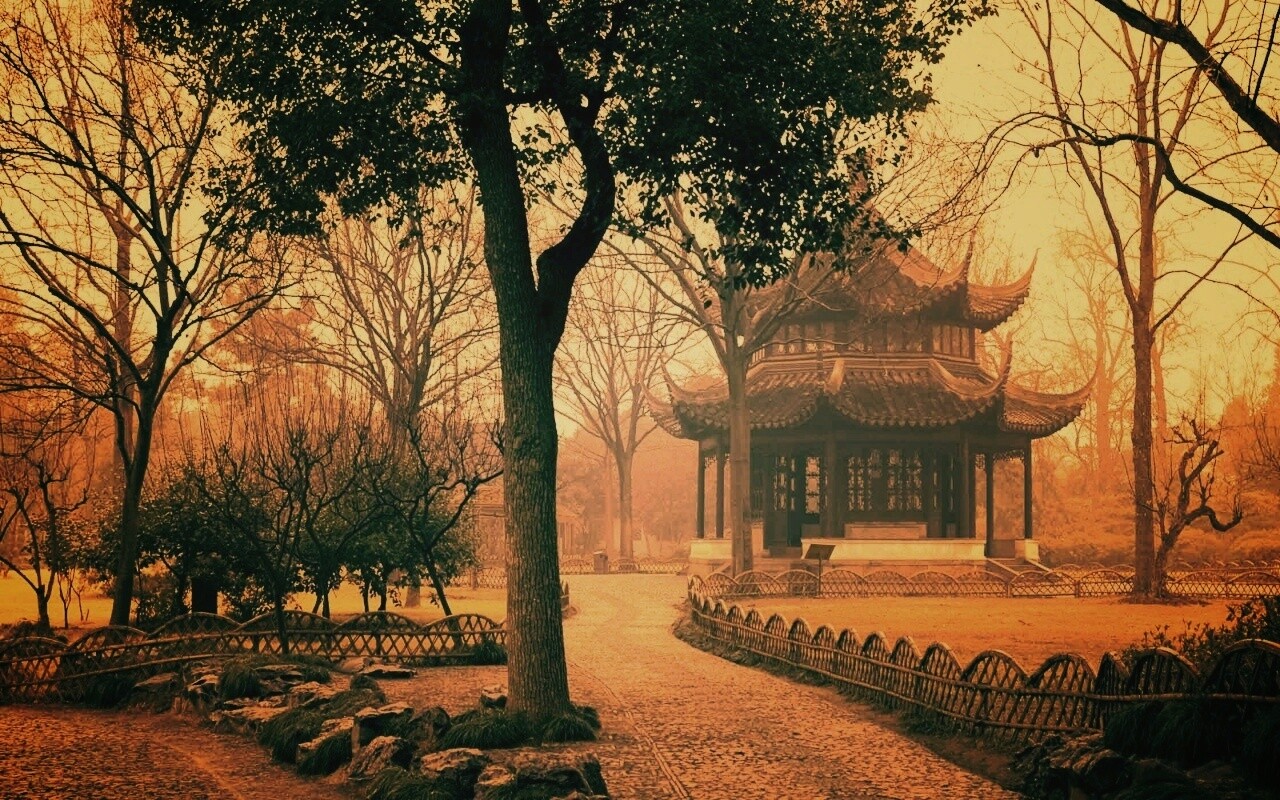 Обои для рабочего стола «Домик я японском саду» 1280х800 с фильтром earlybird (оригинал 2240х1488)