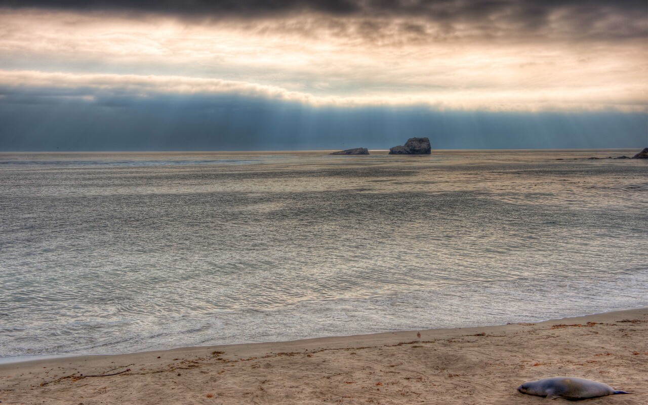 «Пляж на фоне светящегосы неба»