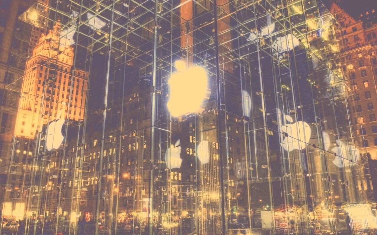 «Отражение логотипа Apple в стеклянном здании»