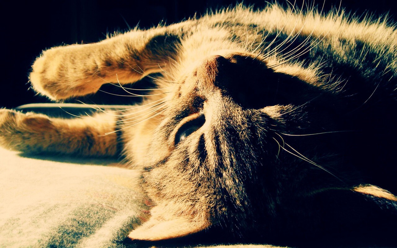 Обои для рабочего стола «Нежащийся кот» 1280х800 с фильтром vibrance (оригинал 2048х1536)