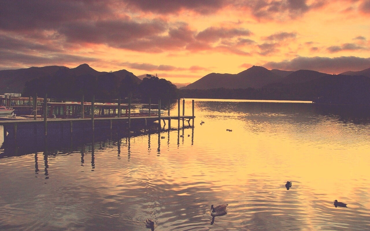 Обои для рабочего стола «Причал на озере и утки» 1280х800 с фильтром nashville (оригинал 2560х1600)